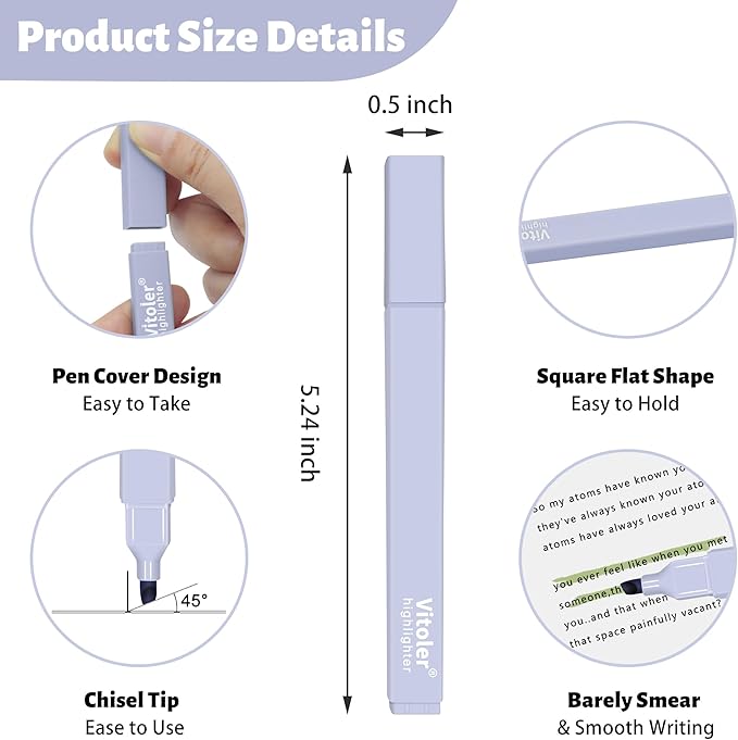• Easy to Hold: The pastel highlighter is designed with square shape,it’s comfortable and easy to hold, without a sore hand and don't roll around while using.