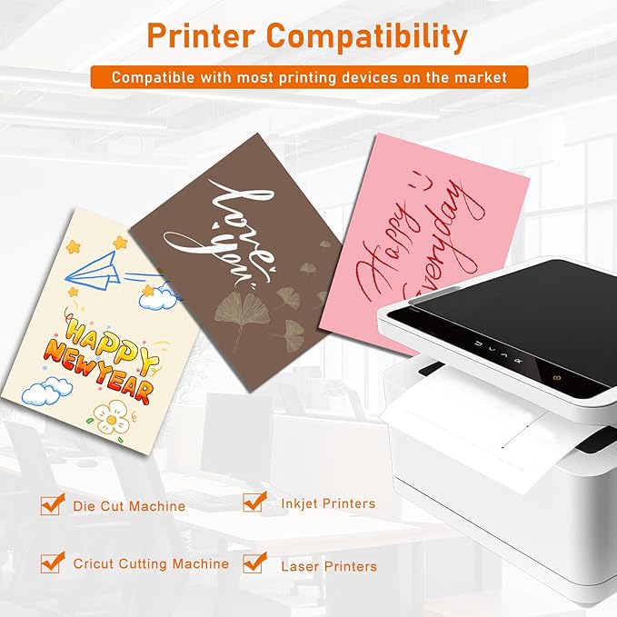 • ▶Printer Compatibility:our thick printer paper card stock is compatible with most types of laser printers, inkjet, die-cutting machines, and cricut cutting machines. Please ensure that your printer can print on 200gsm before ordering