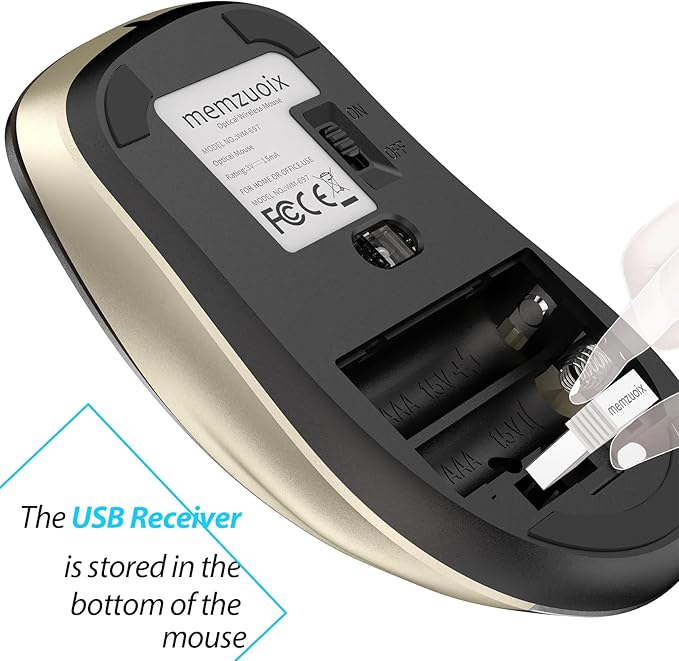 - Energy Saving Design: Before using it, please remove the USB receiver(inside the battery compartment) and then install 2*AAA Dry Batteries(Not Included)!! The 'On/Off' switch design solves the trouble of changing battery frequently. Besides,mouse for computer wireless will turn to sleep mode in 7mins of inactivity for energy saving, can be easily activated by clicking any buttons.