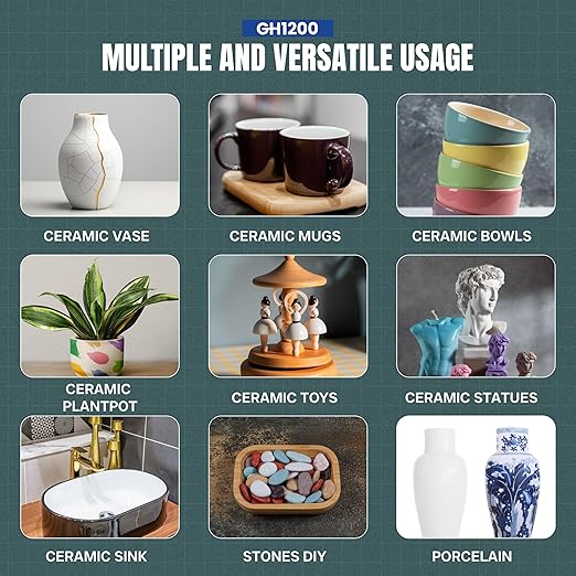 - 【FLEXIBILITY WITH DUAL OPTIONS】 GH1200 ceramic repair glue comes with a built-in brush applicator and nozzle. The ceramics repair glue brush is made for controlled glue for ceramic repair usage. A precise anti-clog nozzle of best glue for ceramic repair can be used to dispense more food safe ceramic glue or to apply at a large surface area