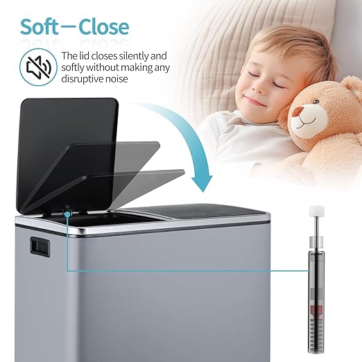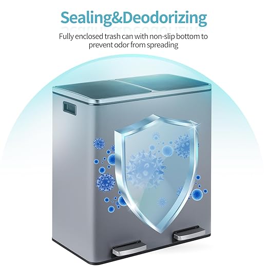 - 2×8-Gallon Compartments: 16-gallon step trash can has two compartments, combining garbage and recycling. Completely separated dual garbage and recycling can also avoid the smell of garbage. 2 removable inner buckets increase convenience