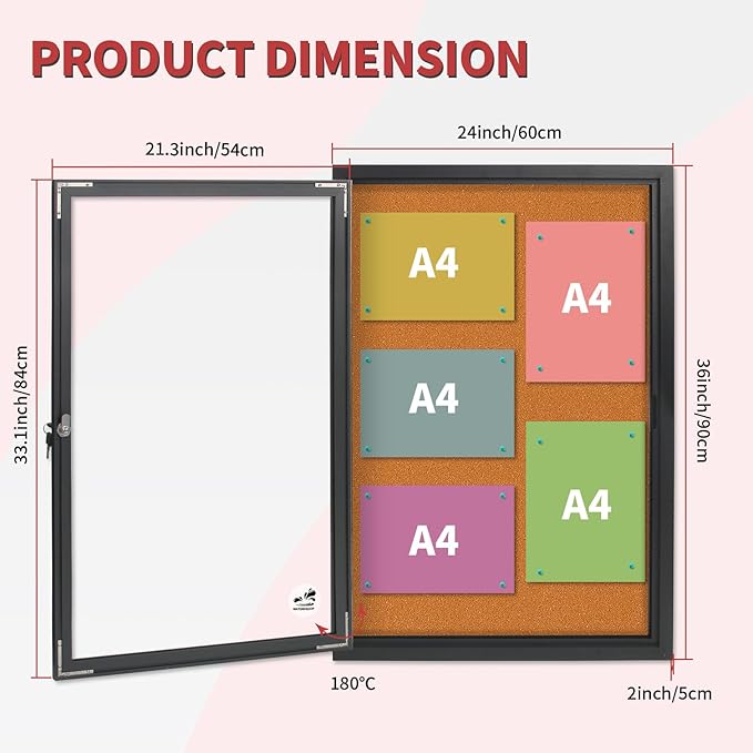 • ๐Ÿ“Œ Spacious 36x24in Outdoor Display Case: Ample space for posters, certificates, and calendars. Mounts vertically/horizontally at entrances or walls.
