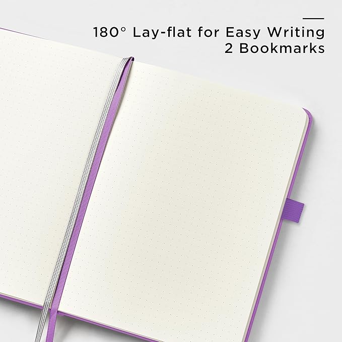 - 180° LAY-FLAT DESIGN: The lay-flat design allows for easy writing and ensures that you can utilize every page efficiently. Journaling, note-taking and planning has never been easier! 2 Bookmarks to help you find important content faster