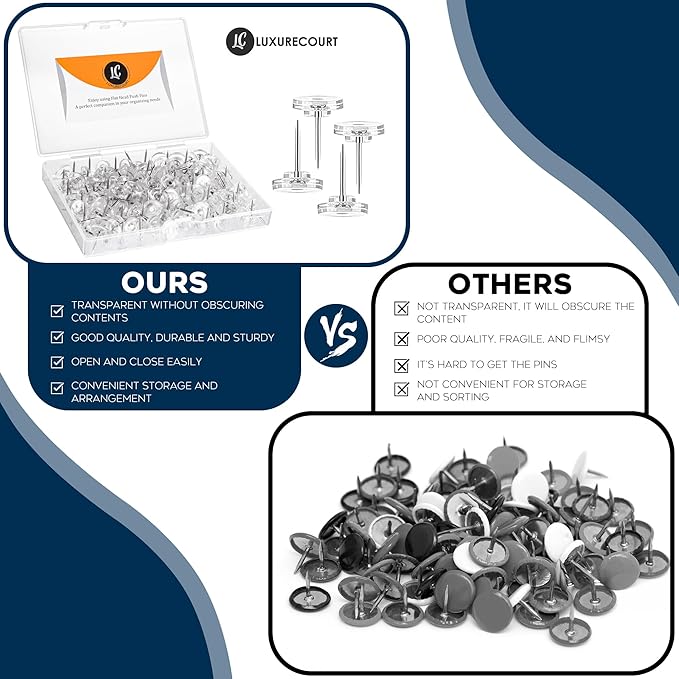 • Convenient Storage Box - You get 150 clear thumbtacks neatly stored in a compact, transparent box. Stay organized and ready for any task without worrying about losing wall pins or creating clutter.