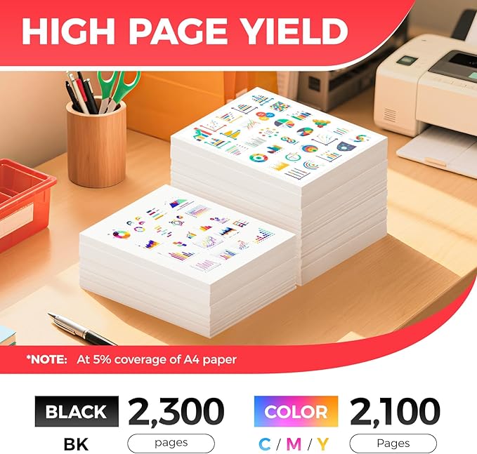 - High-Yield: up to 2,300‬ pages per 055/055H Black and 2,100 pages per 055/055H Color (Total 8,600 pages, 5% coverage).