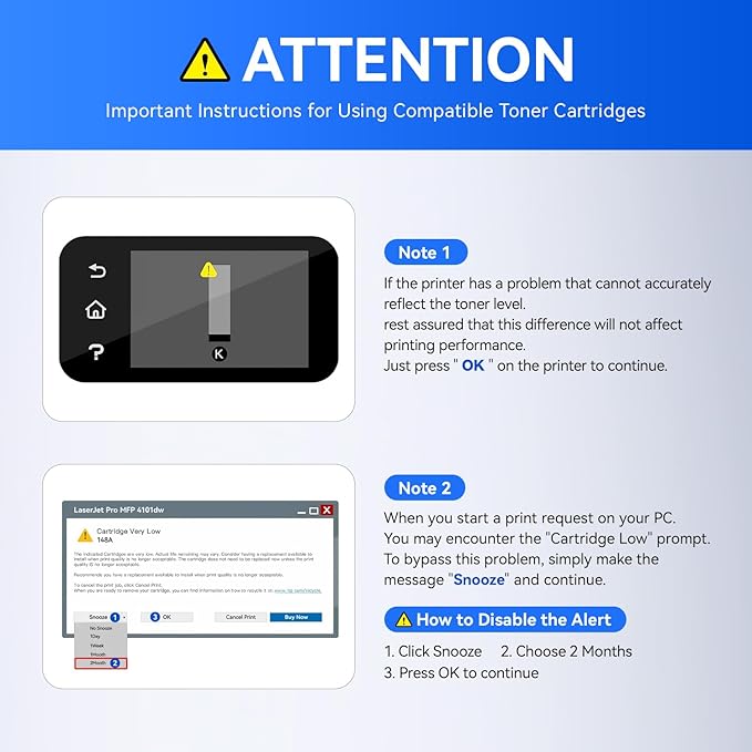 - The latest chip version: The JCTONER toner cartridges are equipped with the latest version of built-in chips, ensuring perfect compatibility between each toner cartridge and the printer. This enables you to print efficiently while maintaining stability and reliability, making installation convenient without the need for manual adjustments. All JCTONER toner cartridges have undergone strict quality testing and have obtained ISO9001 certification. High-quality toner cartridges can meet the demand for high printing volume. The fine toner ensures clear and stain-free printing results and extends the lifespan of the printer. You can purchase with confidence.