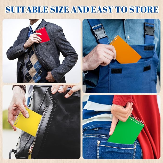 - Top Spiral Bound: each pocket memo pad adopts top spiral binding, so the page can lay flat for a more comfortable writing condition for right or left handed users; And the unobstructed spiral binding design won't hang up on clothes or backpacks, very thoughtful