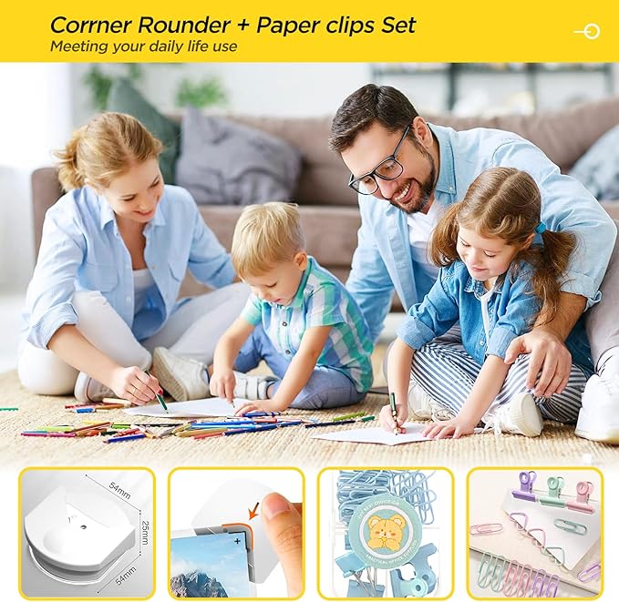 • Sturdy MDF Wood Paper Guillotine with Corner Rounder and Paper Clips: Equipped with aprecise quillotine blade and an aliqnment grid, this trimmer simplifies common cutting tasks. Its solid wood base ensures stability, making it perfect for both home and office use.