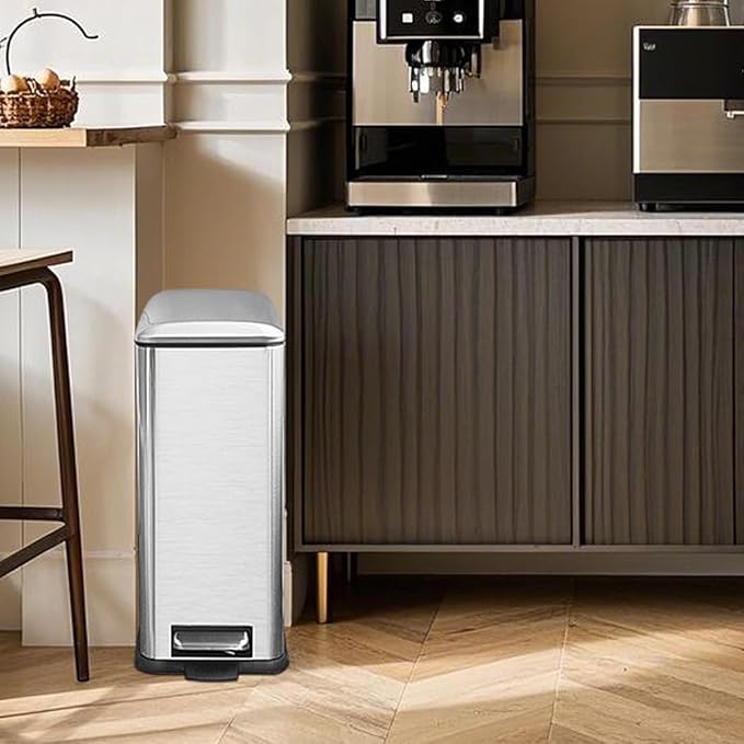 - 12 Gallon Step Trash Can: Our durable stainless steel foot pedal is built to last over 100,000 times, ensuring smooth and reliable operation for years to come.