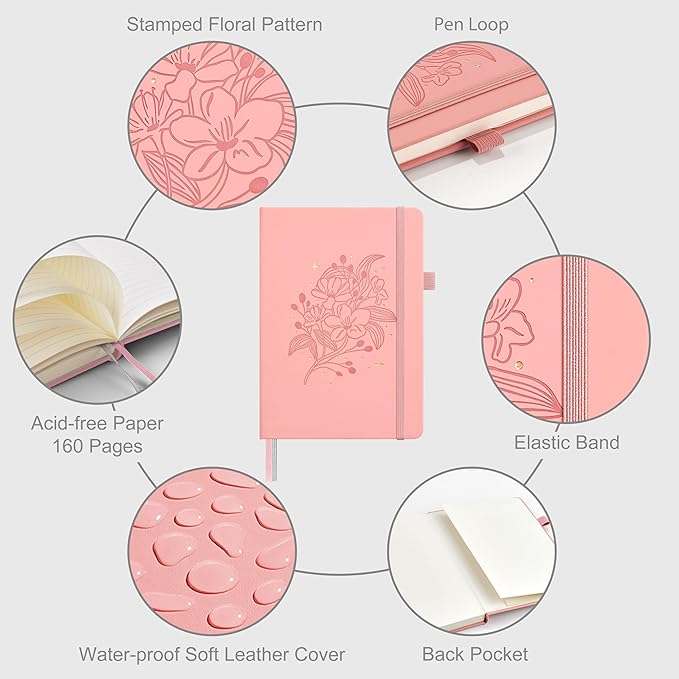 - 160 PAGES LINED NOTEBOOK: 80 sheets/160 lined pages provide ample space for writing. The A5 size (5.7'' × 8'') makes this notebook the perfect travel companion.