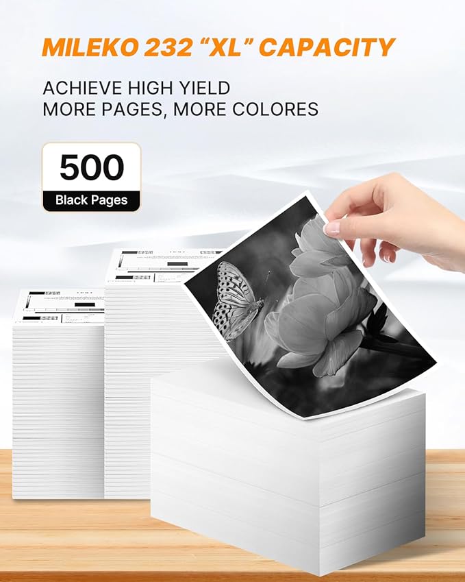 - 3.Page Yield: Up to 500 pages for epson 232xl black ink cartridge (at 5% coverage on A4 paper)