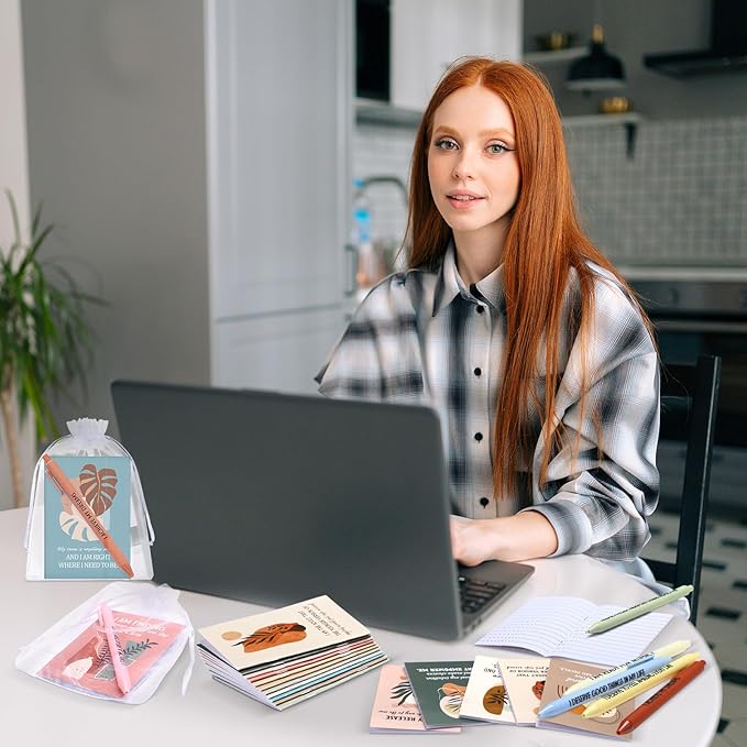 - Package Include: you will receive 24 pcs self care notebooks with 24 inspirational pens and 24 pcs small white bags, with this set, you can spread the joy of gratitude and positivity to multiple recipients, making it an ideal choice for bulk gifting