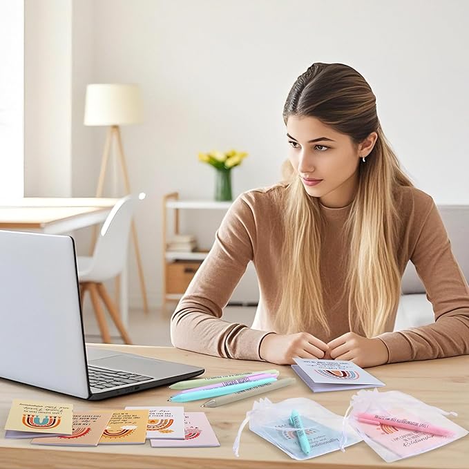 - Package Include: you will receive 24 pcs self care notebooks with 24 inspirational pens and 24 pcs small white bags, with this set, you can spread the joy of gratitude and positivity to multiple recipients, making it an ideal choice for bulk gifting