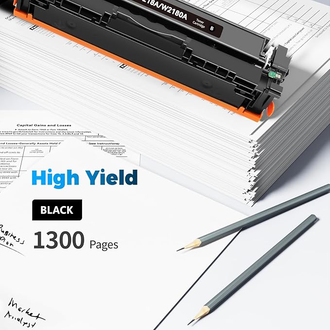 • High Page Yield: Up to 1,300 Pages for W2180A 218A Black toner cartridge at 5% coverage on letter/a4