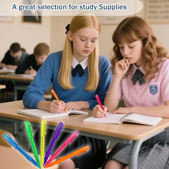 • Multiple Colors:Includes 180 pcs of highlighters in 6 fluorescent colors yellow, blue, pink, purple, green, and bright orange, with 30 pieces per color, perfect for various highlighting and marking needs