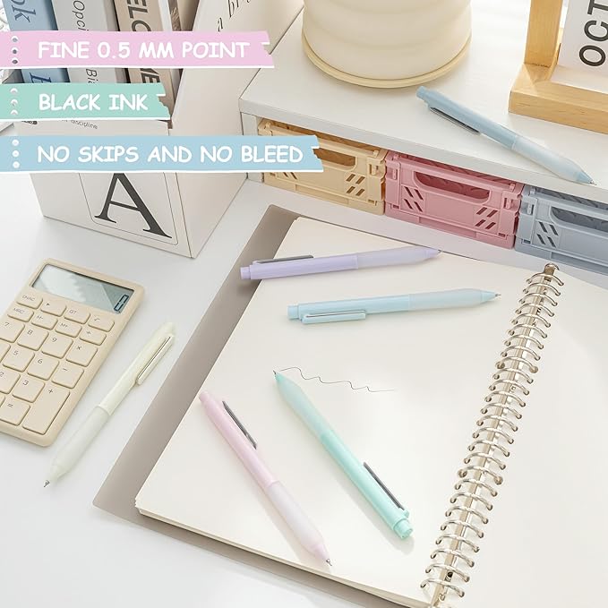• 0.5 MM Fine Point: Pens fine point smooth writing pens, writes clear. You can use them for all your writing, they don't run through the paper, no smear or bleeding