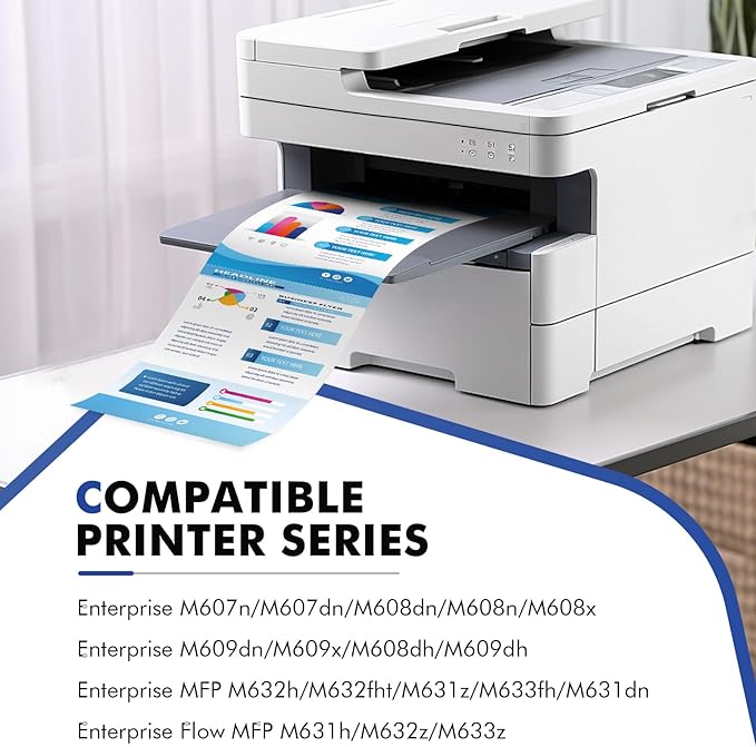 • Compatible for printers: Enterprise M607n M607dn M608n M608dn M607 M608 M609 MFP M631 M632 M633 printer