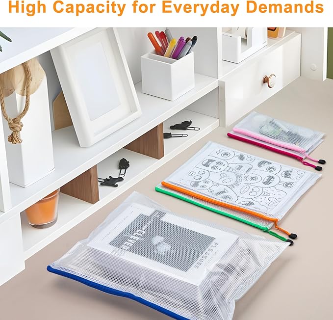 12pcs Mesh Zipper Pouch Bags, Waterproof A4 Letter Size Puzzle Bag for Organizing, Storage, Board Games and Office Supplies, 12 Colors