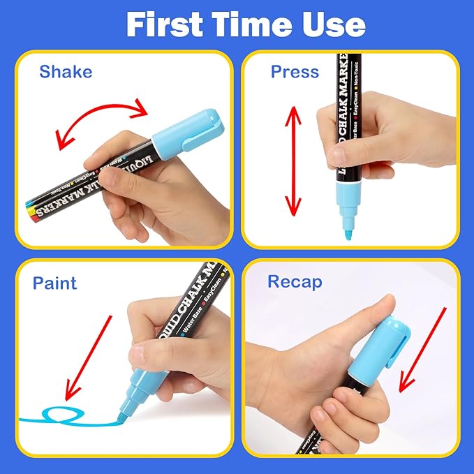 - All-in-One Creative Powerhouse​​ - From teachers’ lesson plans to kitchen labels and influencer-worthy holiday displays—this chalkboard markers set does it all! Shake for 5 seconds to activate intense color. Whether it’s graduation photo backdrops, Halloween car window art, or corporate event signage, prepare for amazed reactions: "Wow! This looks pro!"