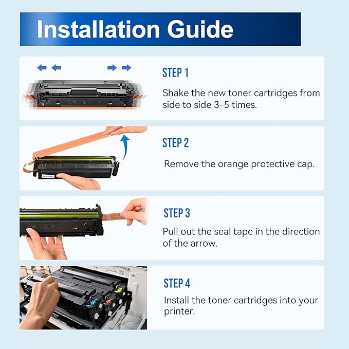 - Package Contents: 1 x 218X W2180X Black toner, 1 x 218X W2181X Cyan toner, 1 x 218X W2182X Magenta toner, 1 x 218X W2183X Yellow toner , 1 x User Guide (Total 4 Pack-With Chip)