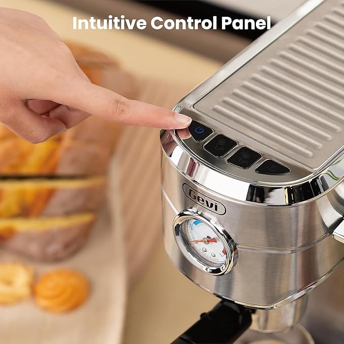 - ๐๐ง๐ฃ๐จ๐ฒ ๐๐๐ฅ๐ข๐๐ข๐จ๐ฎ๐ฌ ๐๐ฌ๐ฉ๐ซ๐๐ฌ๐ฌ๐จ ๐๐จ๐๐๐๐ ๐๐ซ๐ข๐ง๐ค๐ฌ - Equipped with a 20-bar pump, NTC temperature control, pre-infusion feature, and a pressure gauge, the Gevi stainless steel espresso coffee machines with a milk frother allows you to craft a range of cafรฉ-quality beverages. From Mocha to Macchiato, Espresso to Americano, this expresso machine is not only ideal for home or office use but also makes a perfect gift for father, friends, and loved ones.