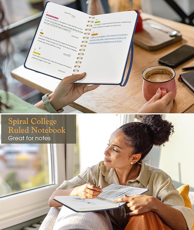 Graph Spiral Journal Notebook, A5 Hardcover Spiral Journals for Women Men, 100 GSM Graph Paper Notebooks, 150 Pages Spiral Bound Grid Notebook for Writing Note Taking Work 5.75" x 8.38", Navy Blue