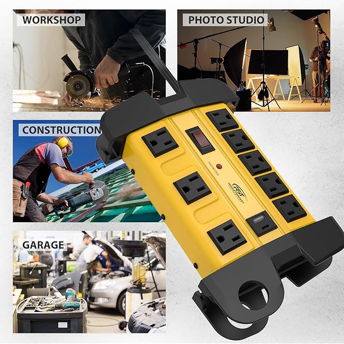 - [Surge & Overload Protection]: 1350 joules protection rating offers outstanding protection against powerful surges. Lighted on/off switch with an integrated 15A resettable circuit breaker offers power control and overload protection over all outlets.