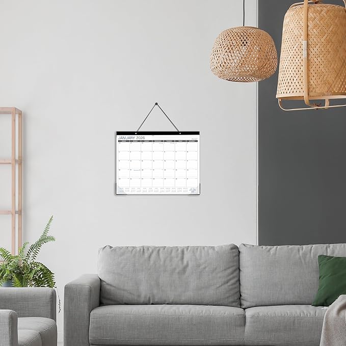 - 🎐2-IN-1 FEATURES - 2 clear corner protectors and hanging holes make it a good for wall hanging. It also works as a 2026 desktop calendar, a 2026 calendar planner or desk pad, a great tool for long term planning. Clear corners keep pages flat on desk or wall.