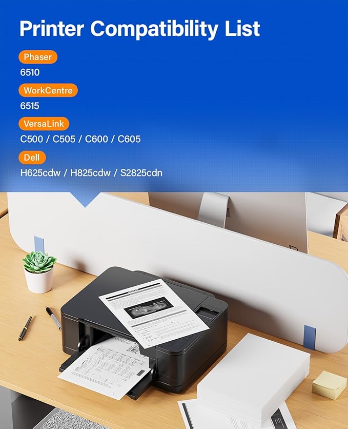 • Compatible Printer: Compatible with Xerox Phaser 6510, Xerox WorkCentre 6515, Xerox VersaLink C500 C505 C600 C605, Dell H625cdw H825cdw S2825cdn laser printer