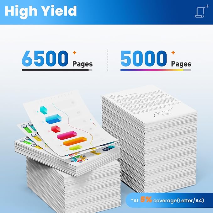 - 410X Toner Cartridge Yield (approx.): 410X toner cartridges 4 pack high yield up to 6,500 pages per 410A black toner cartridge, 5,000 pages per 410A color toner cartridge (Letter/A4, at 5% Coverage)