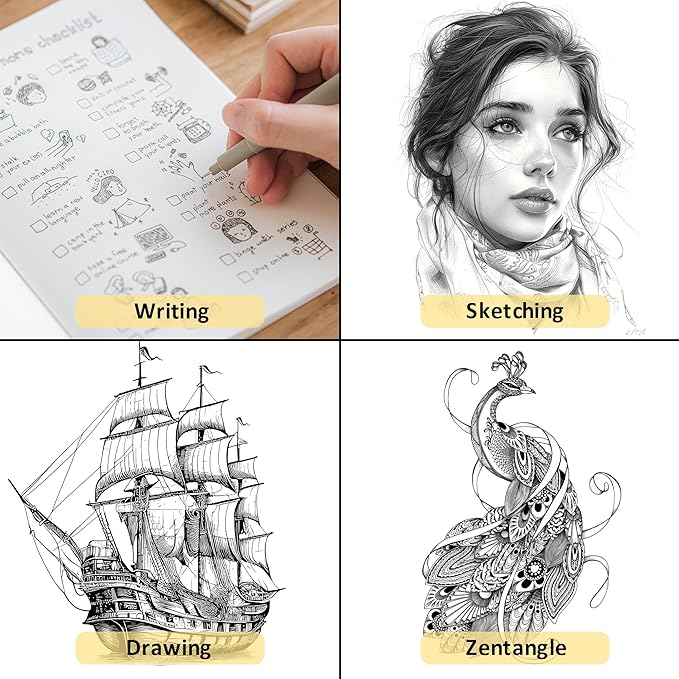 - Archival-Quality Pigment Ink – Waterproof & Fade-Resistant:XWT fineliner pens use rich black water-based pigment ink that is quick-drying, waterproof, sunproof, acid-free, and non-toxic. No smearing, ghosting, or bleeding through paper – ideal for long-lasting artworks, technical drawings, and note-taking.