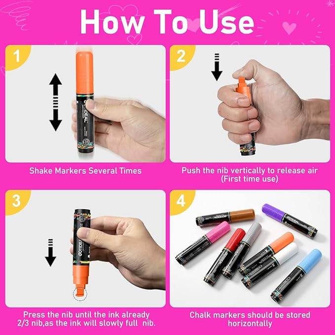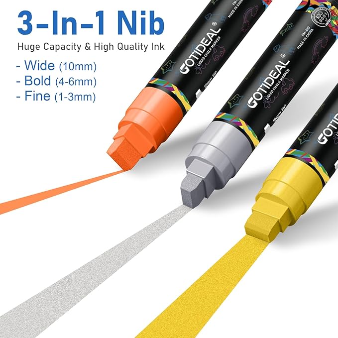 • EASY TO CLEAN - GOTIDEAL liquid chalk pens will keep your design in perfect condition,non-toxic,water-based liquid chalk markers can be erased easily by wiping the area with a damp cloth or paper towel.