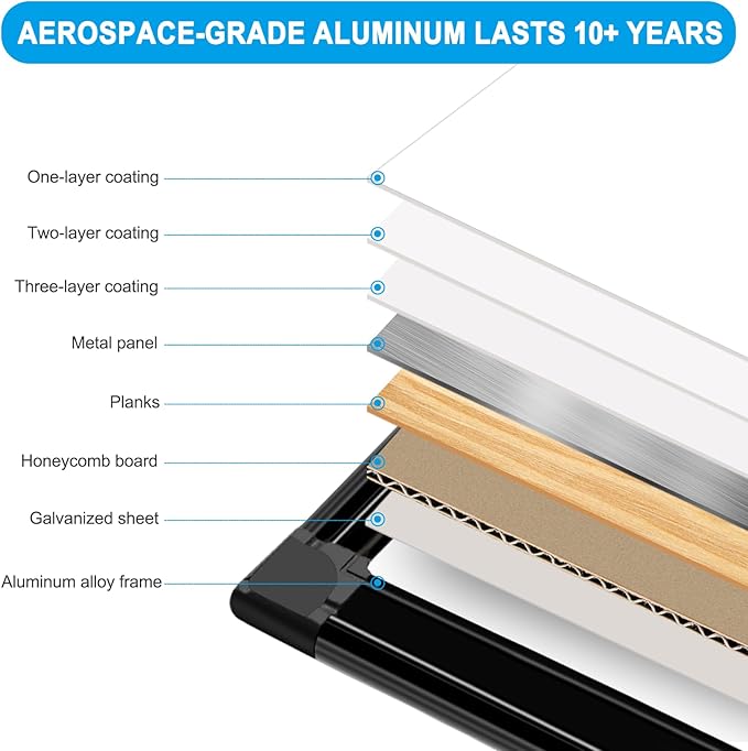- ✔ Premium Durability – Unlike flimsy cardboard-core whiteboards, our sturdy wooden core resists warping, dents, and creases for long-lasting use. Black aluminum frame with ABS corner guards prevents dings.