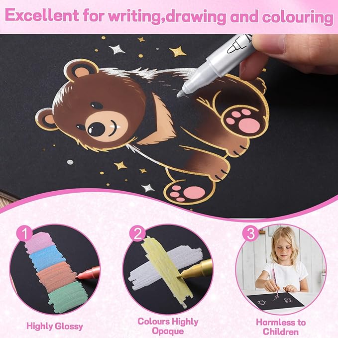 - 【Perfect Gift for Creators】Premium metallic paint markers packed in a sleek set—ideal for birthdays, Christmas, or art students. Elevate rock painting, card making, or DIY crafts with professional-grade tools