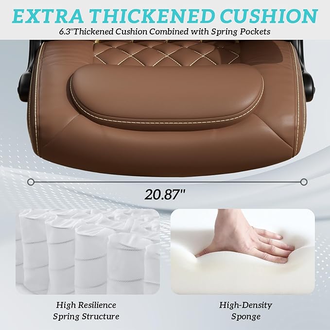 - Big And Tall Office Chair 400 LBS: The executive desk chair also caters to larger individuals with its big and tall design and heavy duty metal base, supporting weights up to 400 lbs(recommended range250-300lbs)