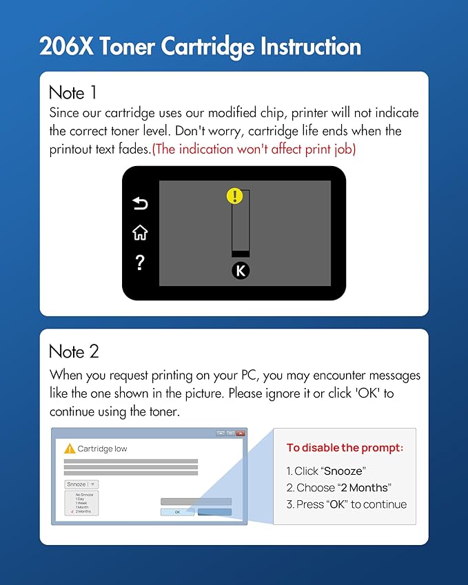• 4. Excellent Performance: 206x black toner cartridges 2 pack Count on high-quality, reliable printing and save time by avoiding common printing problems