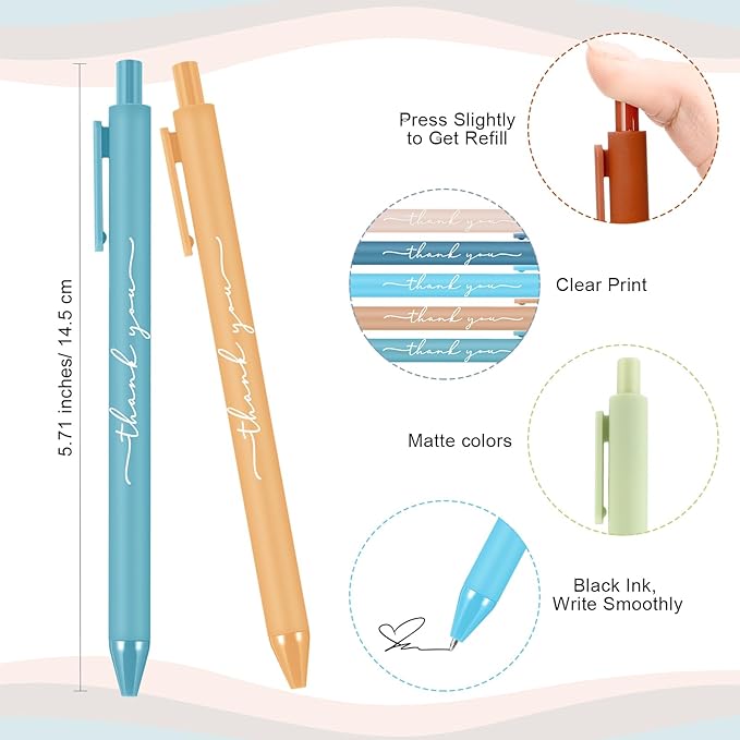 - Convenient Size: the thank you pens are created with a standard size, providing an easy fit into any pen holder or pocket; Their professional size also ensures a steady and reliable grip throughout writing performances
