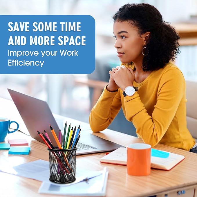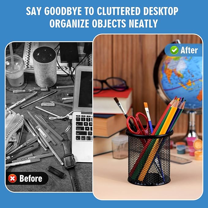 • CAREFULLY DESIGNED : This classic, elegant, and meticulously designed black wire mesh pencil cups / desk organizer keeps your desk looking sleek and sophisticated.