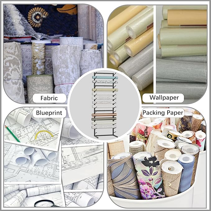 • 【30lb Max Load per Arm】15-tier reinforced metal arms (not wires!) hold 30 lbs each—double standard capacity. Stores 1-4 rolls per shelf (60 total) for blueprints, posters, vinyl rolls, or art prints without bending.