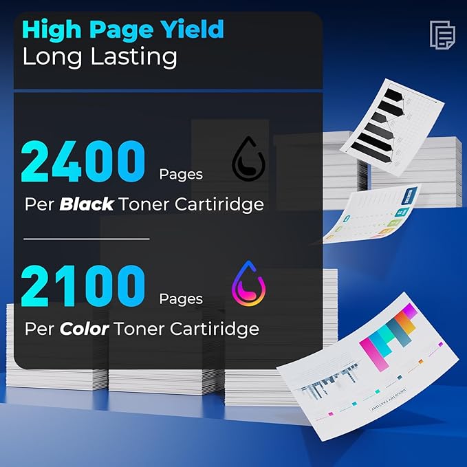 - Page Yield: Up to 2,400 pages for 414a black toner and 2,100 pages per 414a color toner cartridges (Letter/A4, at 5% coverage). Ideal replacement for Color LaserJet Pro MFP M479fdw toner cartridges.